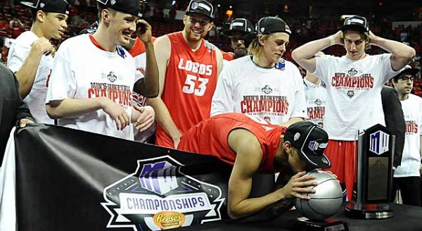 - New Mexico’s regular-season ending loss at San Diego State not only gave the MW regular-season title to the Aztecs, but also had to leave Craig Neal’s squad wounded and angry. Losing a game after building a 14-point lead in the first 28 minutes (one that at that juncture, the Lobos were predicted to win 95% of the time) will never sit well, but the knife twists only deeper when that kind of thing happens against your biggest rival, in your season’s most important game. Those bad memories only made Saturday’s Mountain West title game that much more important for the Lobos, so consider their 64-58 MW Tournament-clinching victory yesterday a cleansing reset for a team looking more dangerous by the week.