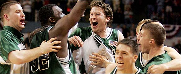 Tom Brennan: We were pretty. We really were pretty. I had this radio show every morning during morning drive-time. It was like something out of a novel. Sorrentine was the little street kid from Pawtucket [RI], you know, who was the leader and had his hat on sideways. And Coppenrath was like Lil’ Abner; he was from a town of 200 people, and they loved him. They loved him! He never complained; he was really a treat. And then I had three or four other guys that just really blended in. I always say this — like, David Hehn — the first year we won [in 2003], we won at BU, and he made a jumper with about five seconds to go to win the game. So now, it’s Vermont’s first championship, we win it on the road. Everybody’s nuts, but then we had Coppenrath and Sorrentine. You know, Sorrentine was out that year, and he’s coming back and he’d been the MVP. And the year he was out, Coppenrath was the MVP. So now I got these two studs, and they’re both really good, but I also have to manage all this sh– to make sure everybody is on the same page. Like Hehn went from a superhero to A Chorus Line — he went back, “just let me guard the other team’s best player.” But if any of those kids had ego problems, I think we could have blown up. They were just so good about it, and everybody really was into the idea that we’re all better if we’re together, and we’re all better if we don’t care who gets the credit and that kind of stuff. As cliched as it sounds, it really was the truth. Coppenrath and Sorrentine were both ultimate teammates, and the other three guys were as well. And we were tough! We’d been around — all the same guys — for three years, then ESPN got interested. ESPN The Magazine did a big story on us, and Sports Illustrated. It was off the hook, and it’s such a little state and we’re the only Division I school, and people just went crazy about it. Really, those guys were like the Beatles — they really were.