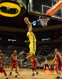 Arsalan Kazemi starts off his second game as a Duck with a dunk against Jacksonville State. (Photo by Rockne Andrew Roll)