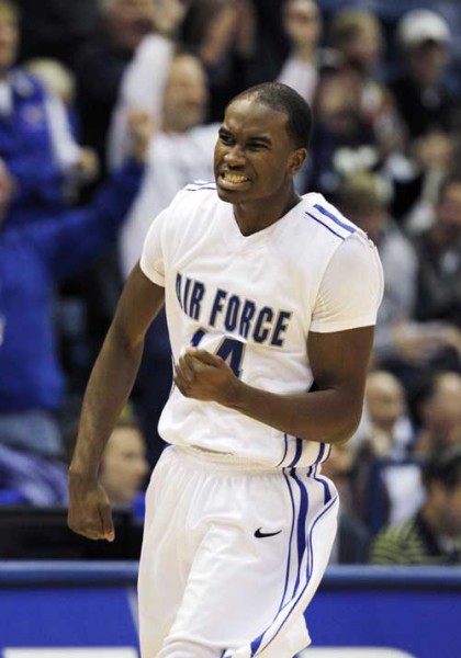However, as UNLV continues to try to figure out their roles in anticipation of the NCAA Tournament, the Rebels got to spend the rest of the game in a glorified scrimmage working on stuff. One of the biggest changes was a new starting lineup featuring both Mike Moser (at the four) and Anthony Bennett (at the five). For the Rebels to live up to their vast potential, Dave Rice has to find a way to get production out of both of these guys – and preferably at the same time. Bennett’s first half minutes were limited by foul trouble (and stupid fouls, at that), but if UNLV is going to come up with a last-minute solution for these two, it probably involves that combination. They’ve tried Moser at the three plenty of times and his inability to consistently knock down the long jumper, take anyone off the dribble or rebound effectively out there has basically put an end to that experiment. But today there were promising signs, albeit against a seriously outmanned opponent. Against an Air Force team that only played one guy taller than 6’6″ in the second half, Bennett scored 19 points after the break and was spectacular at times, while Moser grabbed 10 defensive boards and looked as comfortable as he has all season with Bennett. The primary strategy in the half-court seemed to be starting with Moser and Bennett on opposite blocks, allowing them to set screens for each other and both be in position to crash the glass. Occasionally, one would float out to the three-point line – Bennett up top, where he hit a couple, and Moser to the corner, where he hit one – but against a smaller team, each was able to work effectively inside. Bigger tests await, but the Rebels continue to work on ironing out their offense. Also credit sophomore center Khem Birch for taking to his new role – coming off the bench – without missing a beat. In 19 minutes, Birch made all four of his field goal attempts, grabbed eight boards and blocked three shots.